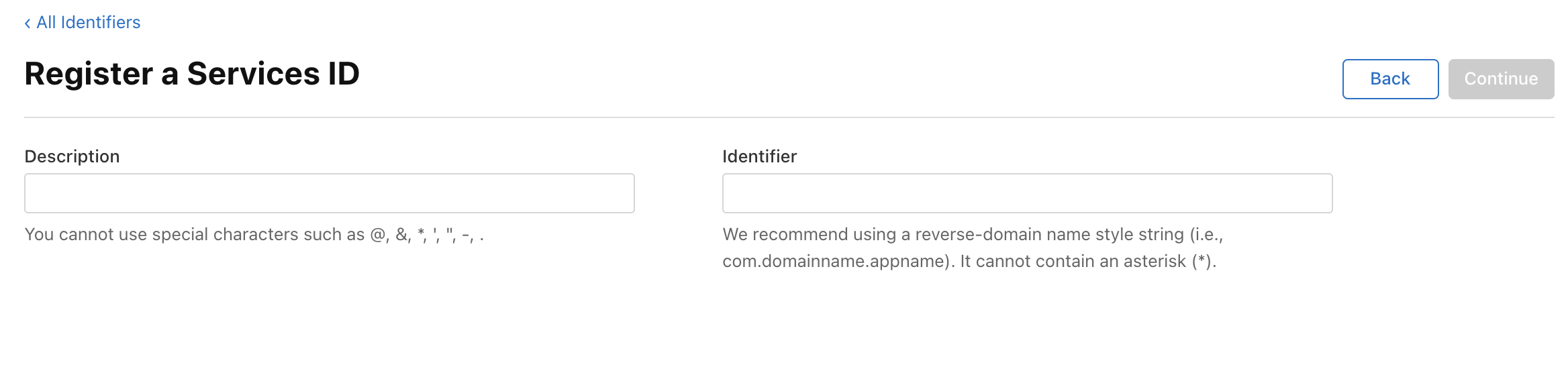 다시 Identifiers > Identifiers + 버튼을 눌러준다. 이번엔 Service IDs 를 선택하고 다음.